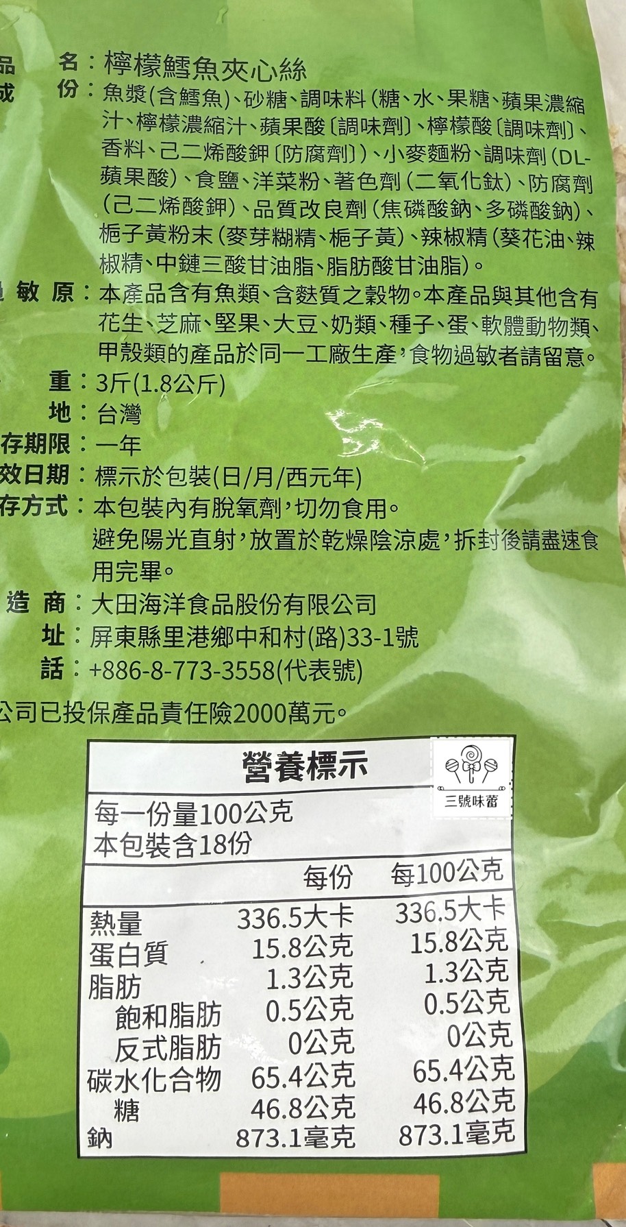 量販 雙層鱈魚夾心絲 1800克 (檸檬)