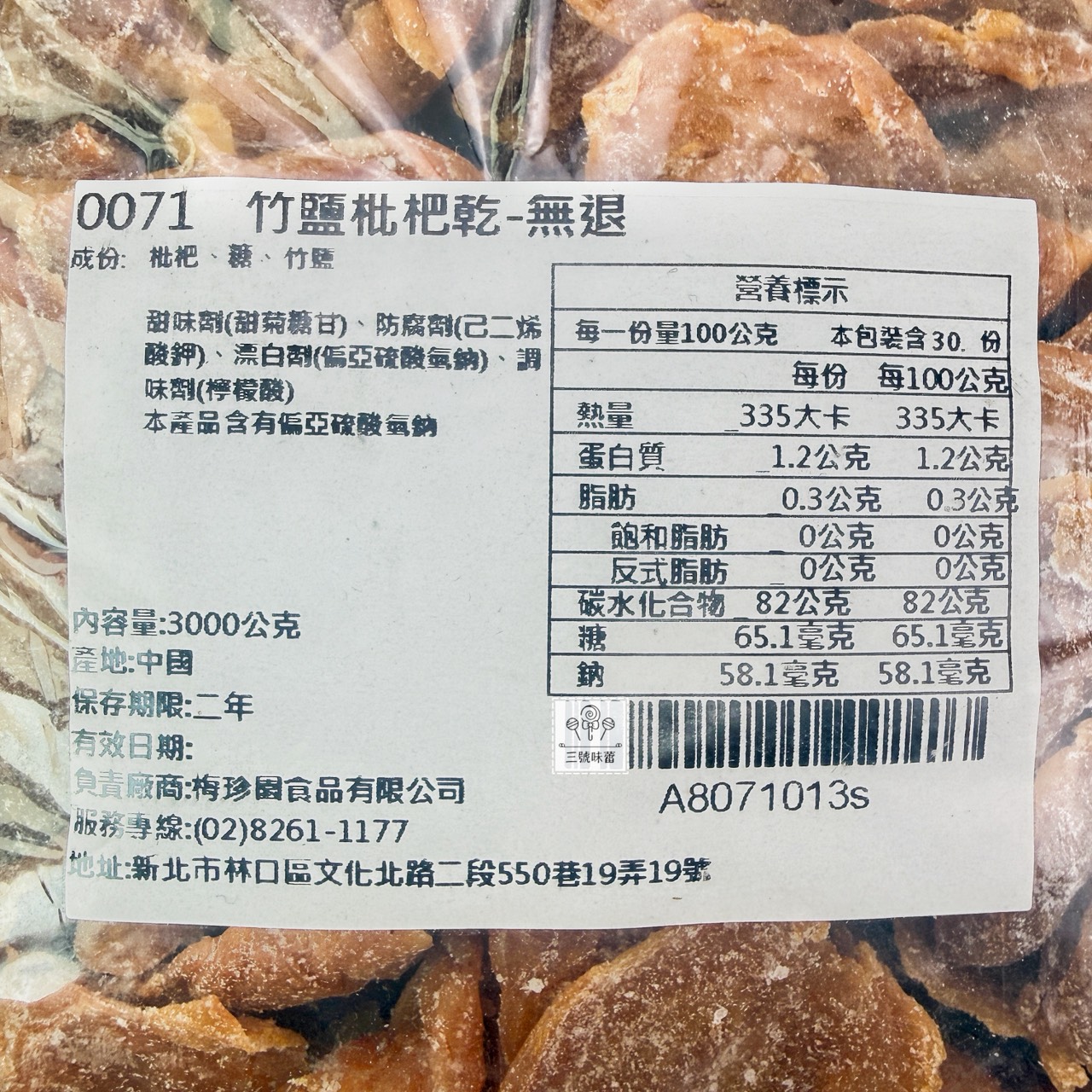 量販 梅珍園-竹鹽枇杷乾 3000克/原封包