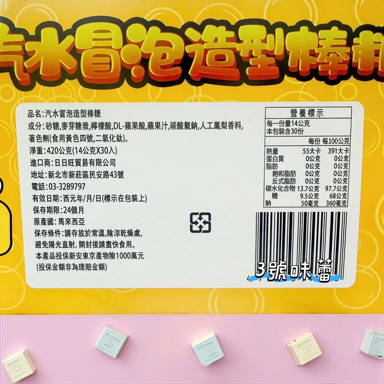 零售 日日旺-汽水冒泡造型棒糖 (14克X30入) / 盒