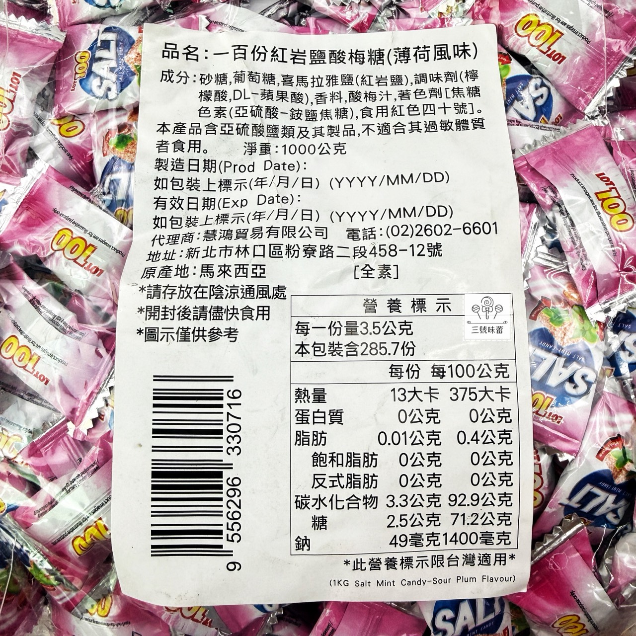 零售 一百份紅岩鹽酸梅糖 1000克 / 原封包