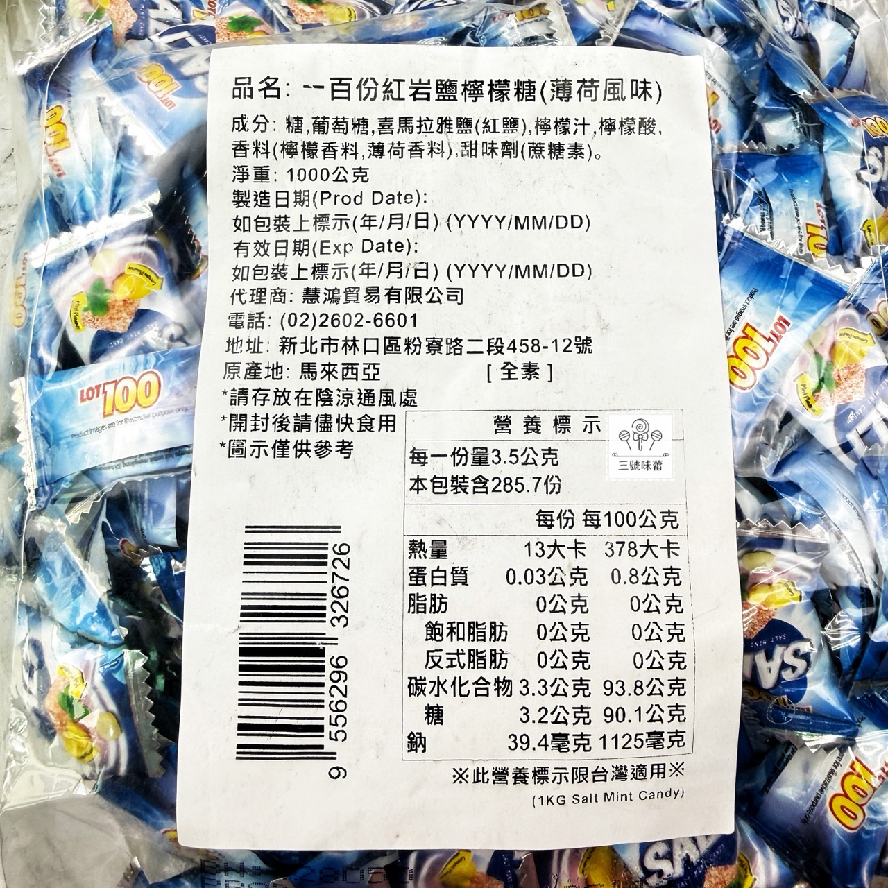 零售 一百份紅岩鹽檸檬糖 1000克 / 原封包