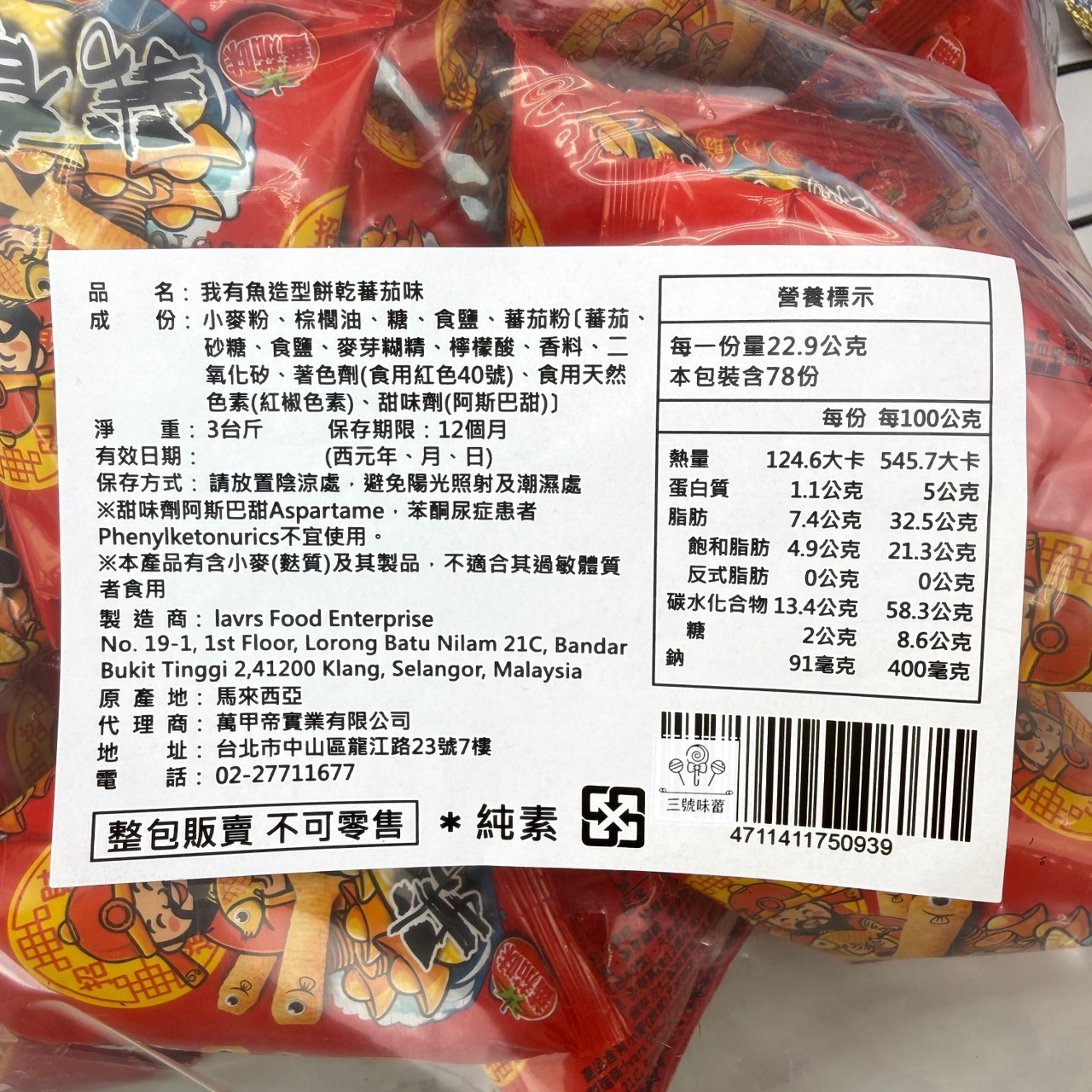 量販 萬甲-我有魚造型餅乾 (番茄味) 1800克 / 袋