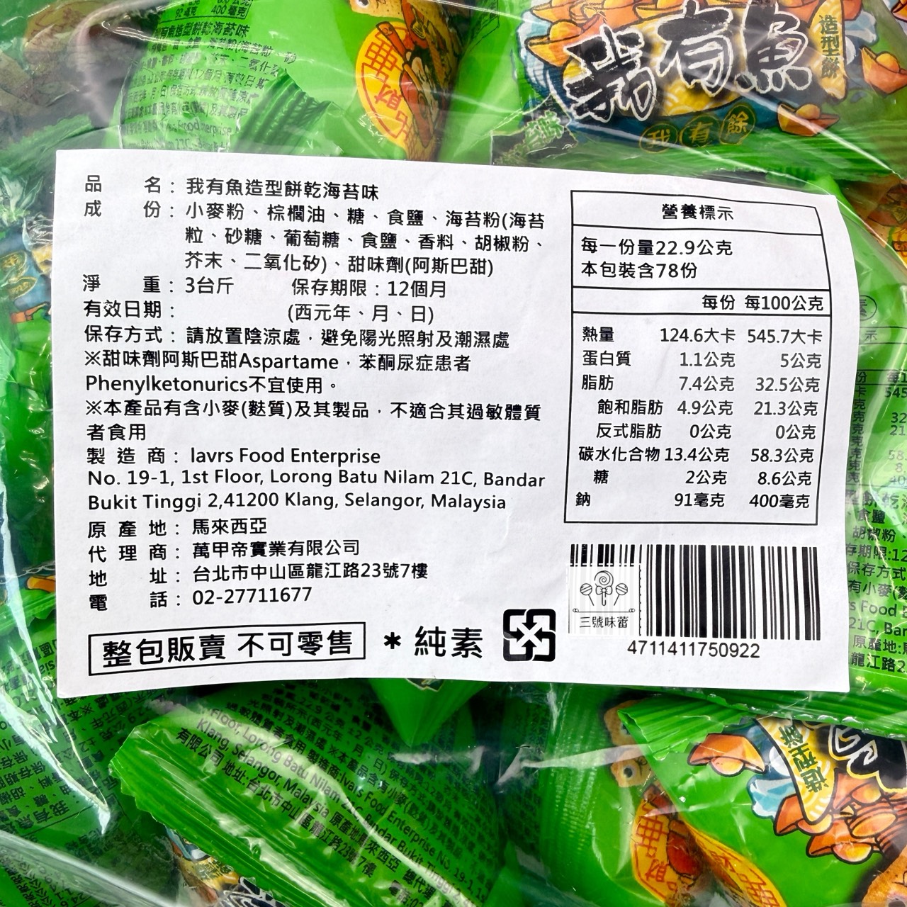 量販 萬甲-我有魚造型餅乾 (海苔味) 1800克 / 袋