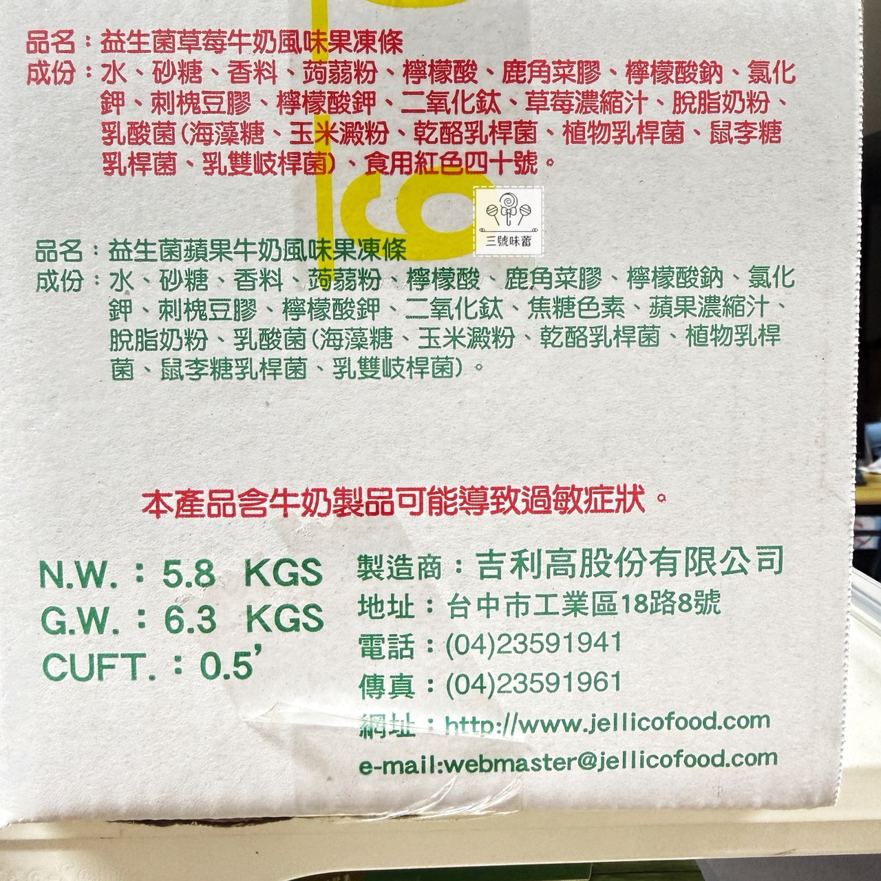 量販 晶晶 益生菌牛奶風味果凍條 5800克 / 箱