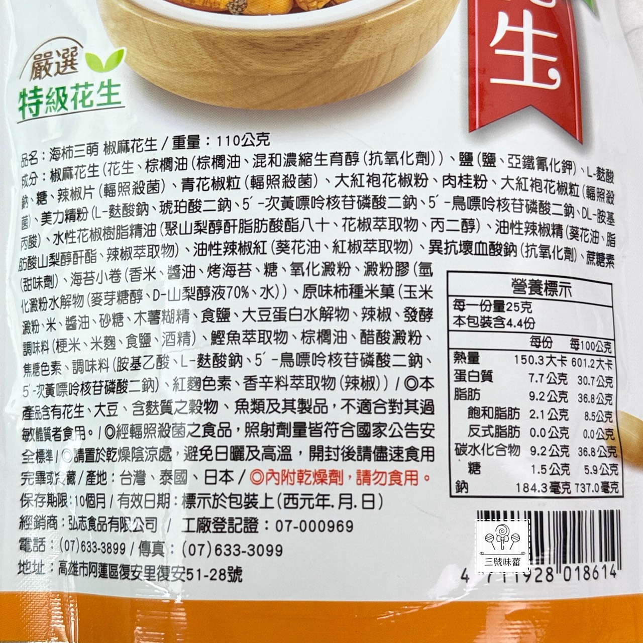首頁 > ∣蜜餞∣果乾∣堅果∣ > 海柿三萌-椒麻花生 110克/原封包