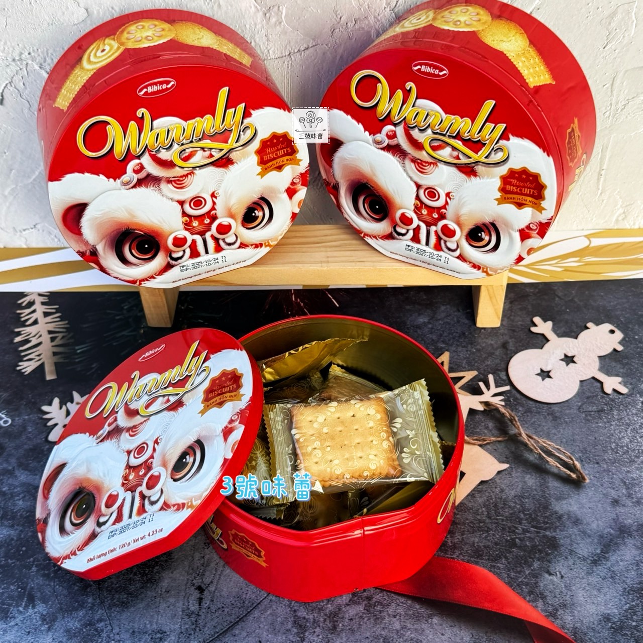 充滿過年喜氣的圓形鐵盒